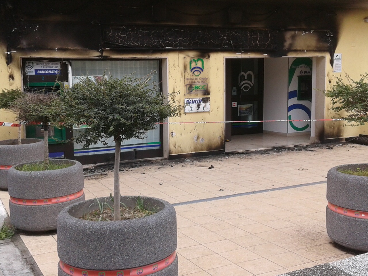 FOTO NOTIZIA ! INCENDIO NELLA FILIALE BCC A TORTORA MARINA CS